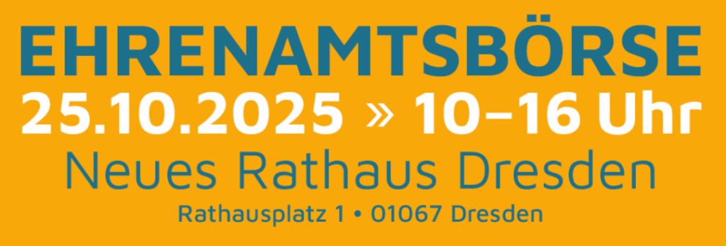 Auch in diesem Jahr wird wieder die Ehrenamtsbörse der Freiwilligenagentur ehrensache.jetzt zusammen mit der Landeshauptstadt Dresden im Dresdner Rathaus stattfinden. Und wir sind mit dabei!